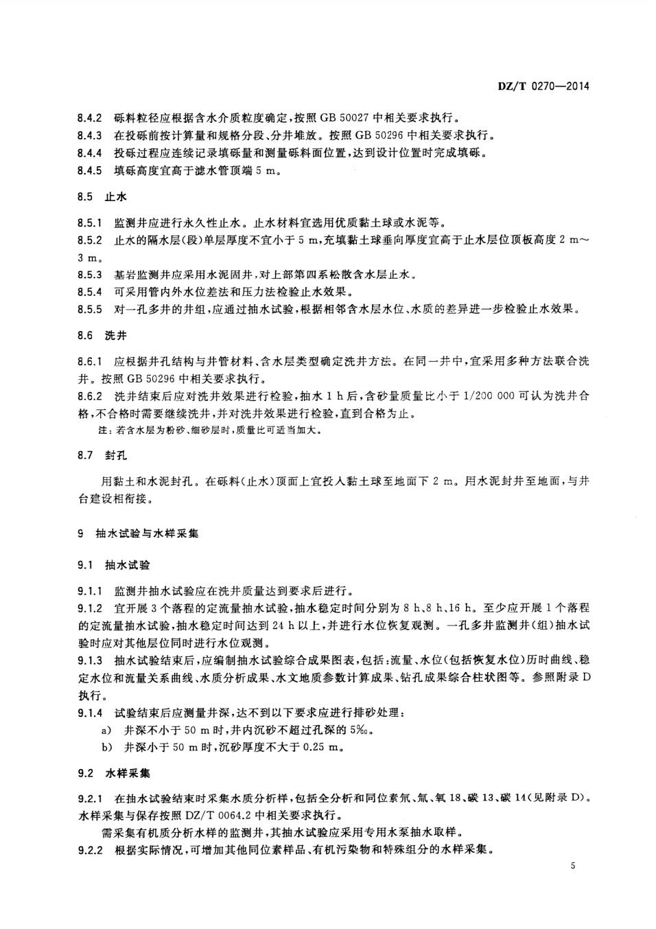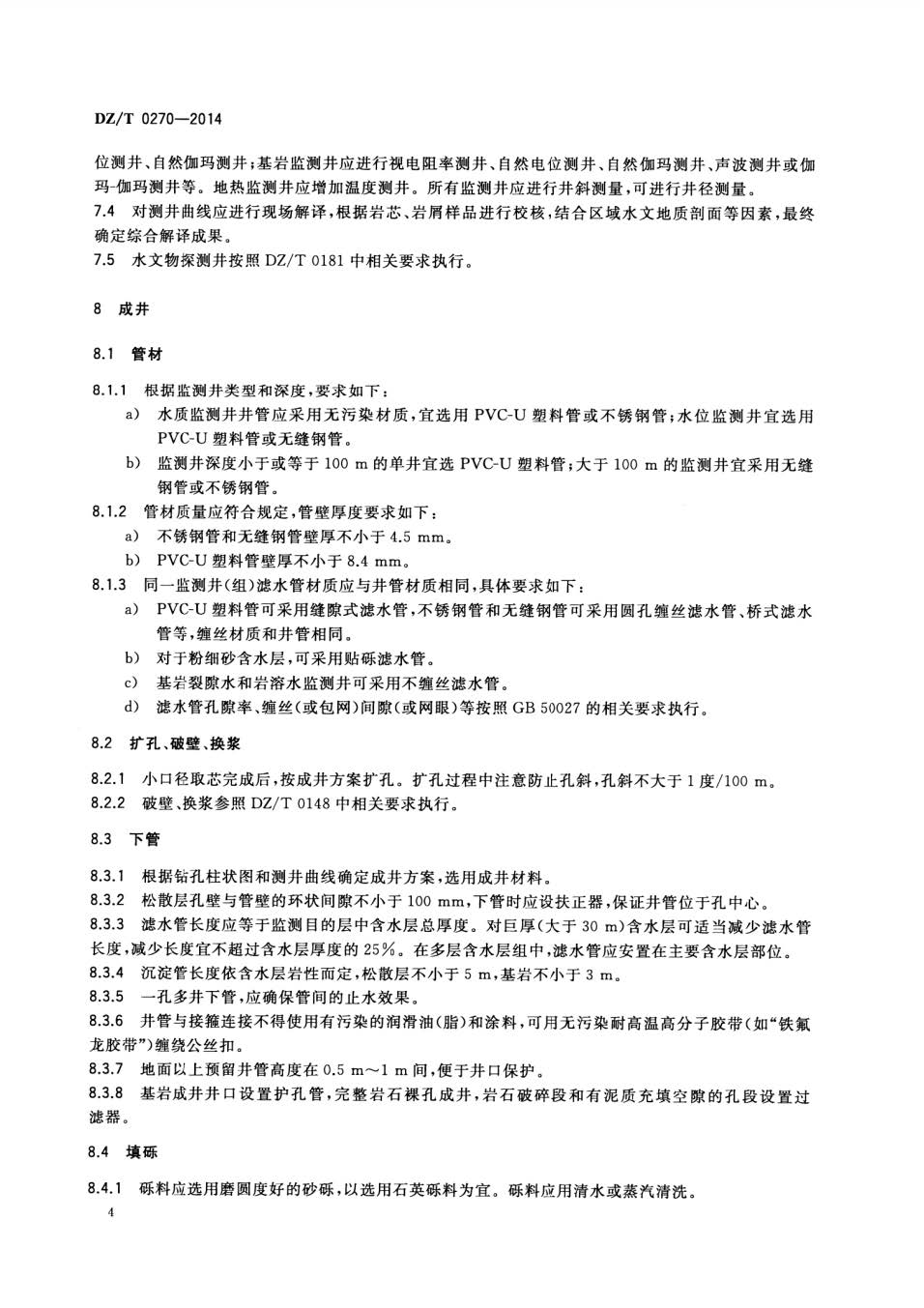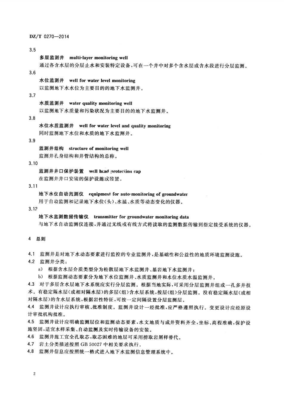 地下水监测井建设规范DZT0270-2014