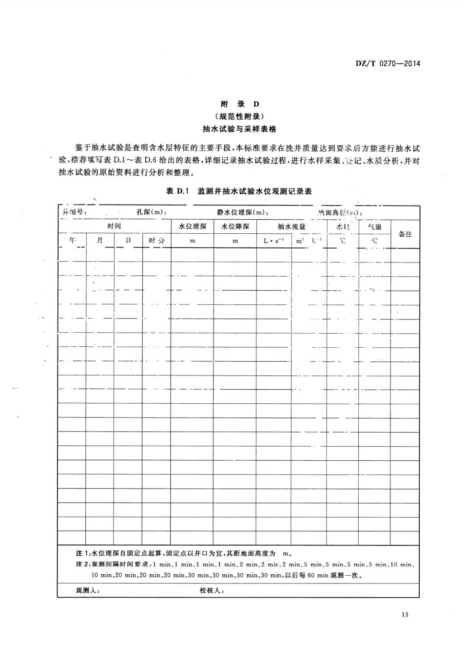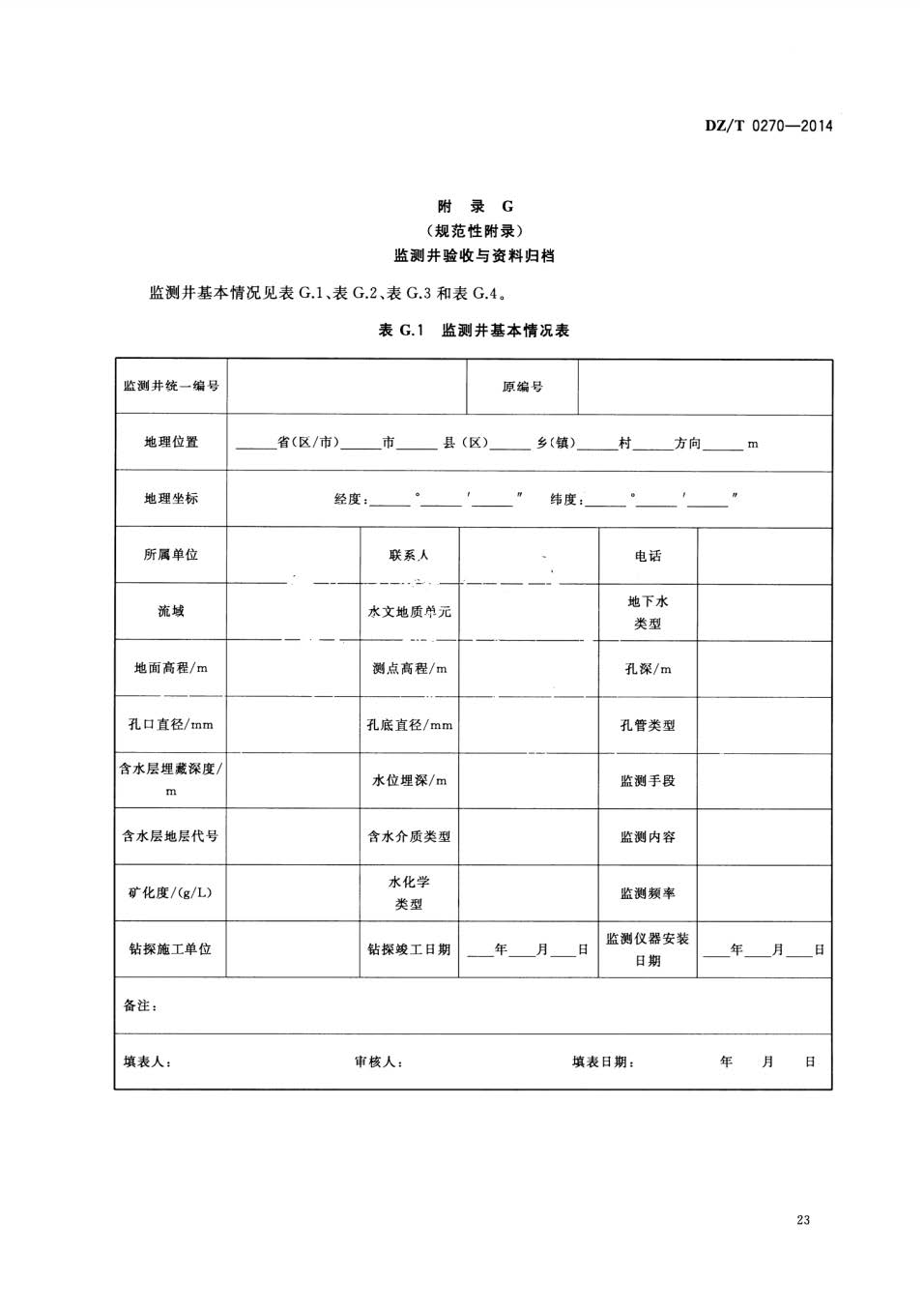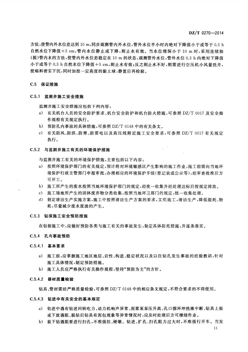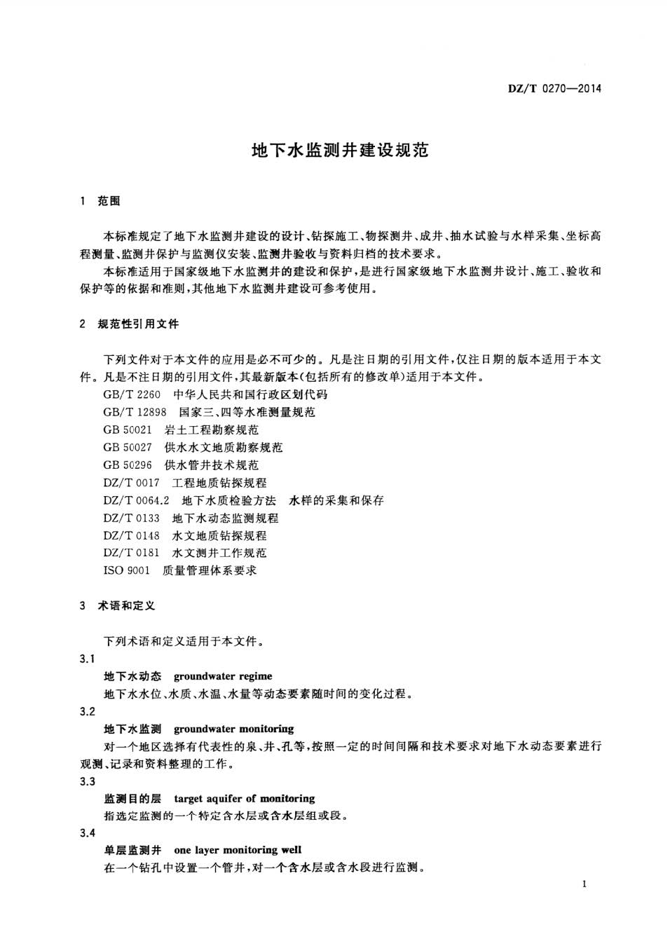 地下水监测井建设规范DZT0270-2014