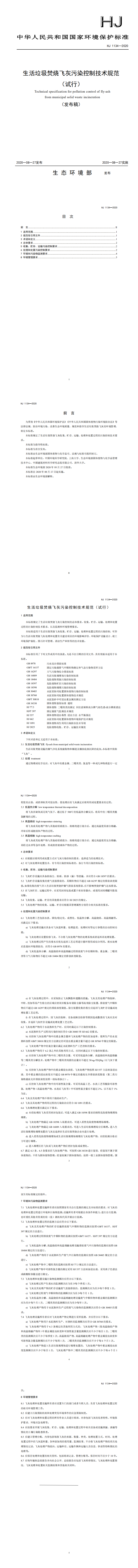 生活垃圾焚烧飞灰污染控制技术规范(试行)(HJ 1134—2020)