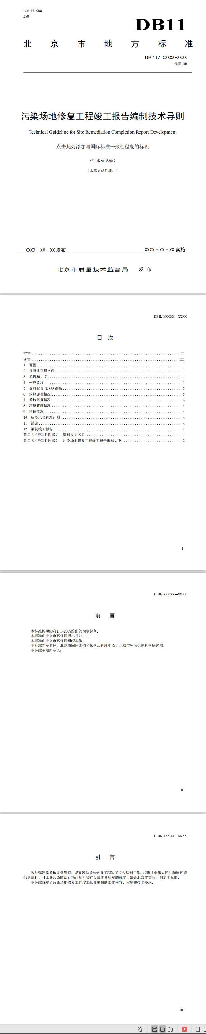 北京污染场地修复工程竣工报告编制技术导则》(征求意见稿)